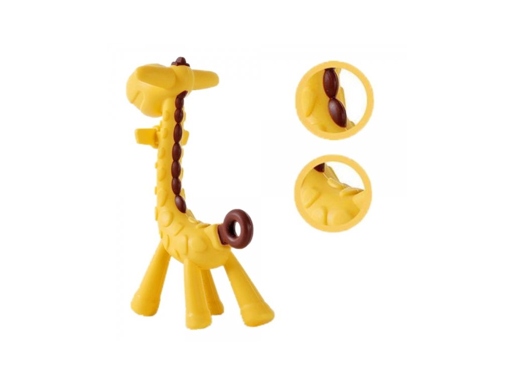 Praktické a barevné silikonové kousátko ve tvaru žirafy.Objevte kousátko ve tvaru veselé žirafy, které kombinuje funkčnost a atraktivní vzhled. Navrženo s ohledem na nejmladší, vyznačuje se živými barvami a ergonomickým tvarem, ideální pro malé dětské ručičky.