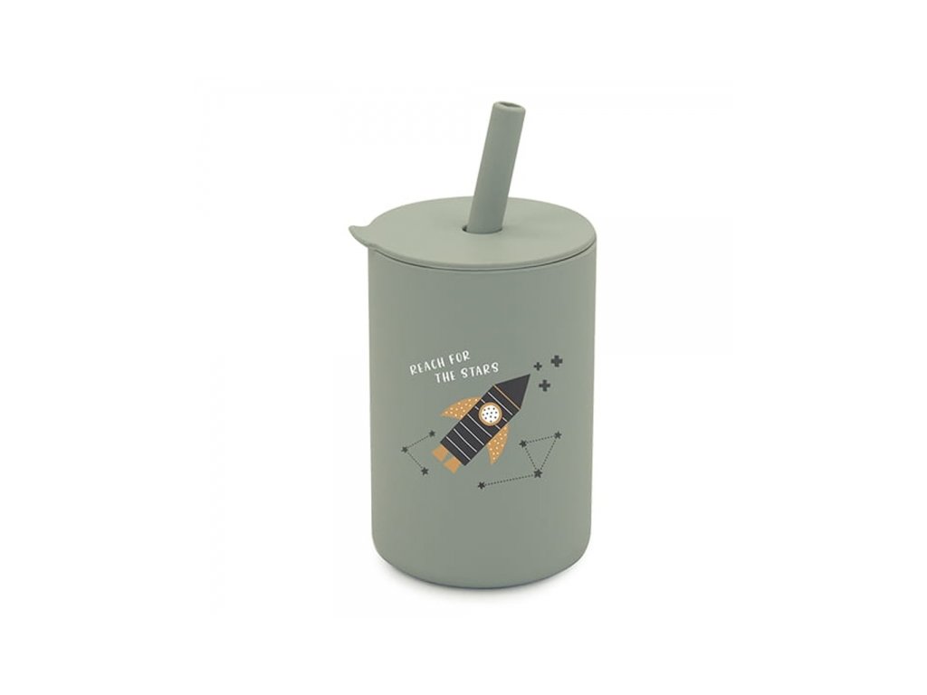 Silikonový hrnek s brčkem Raketa, 150 ml - šedý