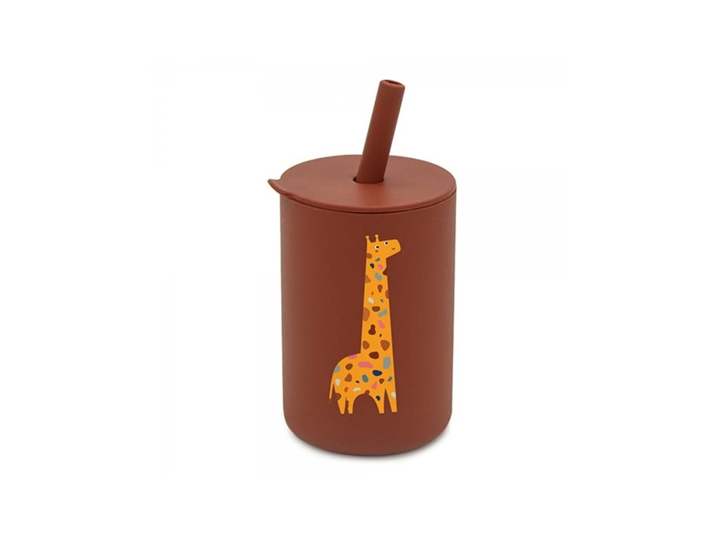 Silikonový hrnek s brčkem Žirafka, 150 ml - hnědá