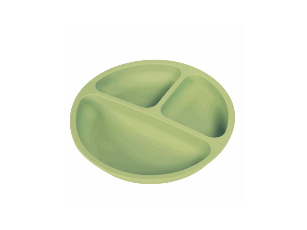 Silikonový talíř se třemi přihrádkami usnadňuje a každé jídlo. Dvě menší přihrádky a jedna větší přihrádka pomáhají oddělit ingredience, čímž zabraňují míchání chutí.Charakteristika: