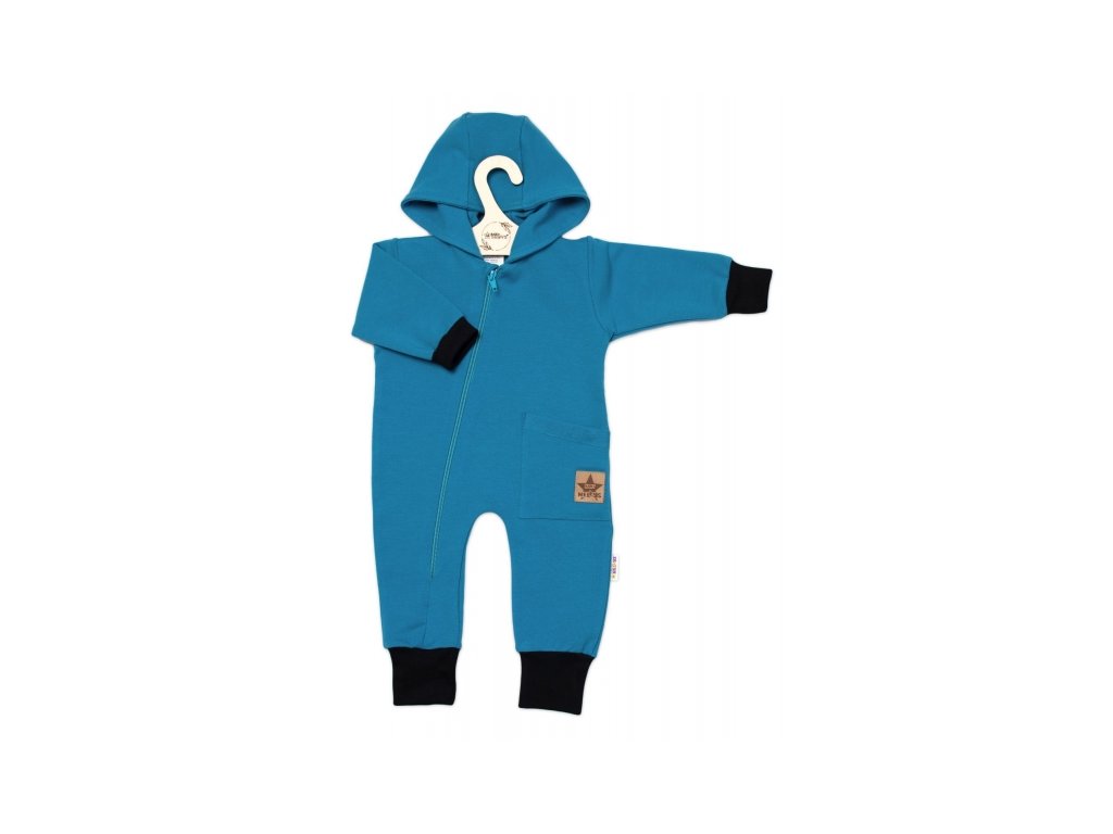 Teplákový overal s kapsičkou a kapucí BOY, Baby Nellys, petrolejový