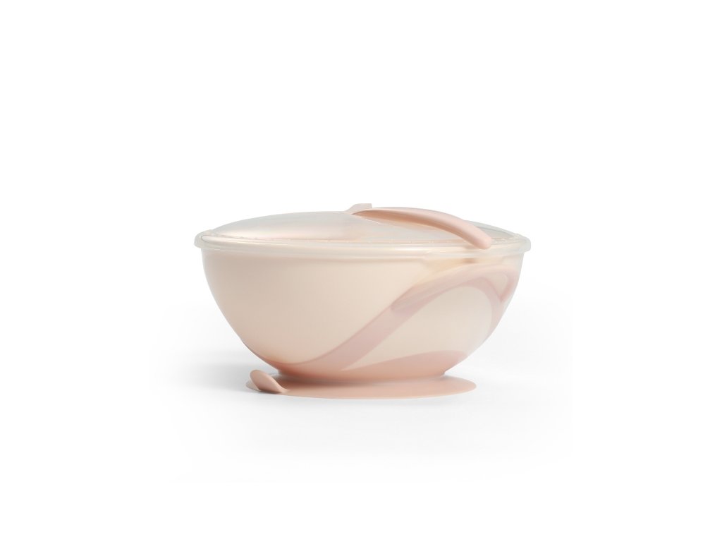 Uzaviratelná miska s přísavkou a lžičkou - ecru, růžová