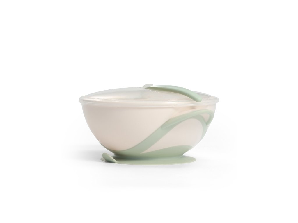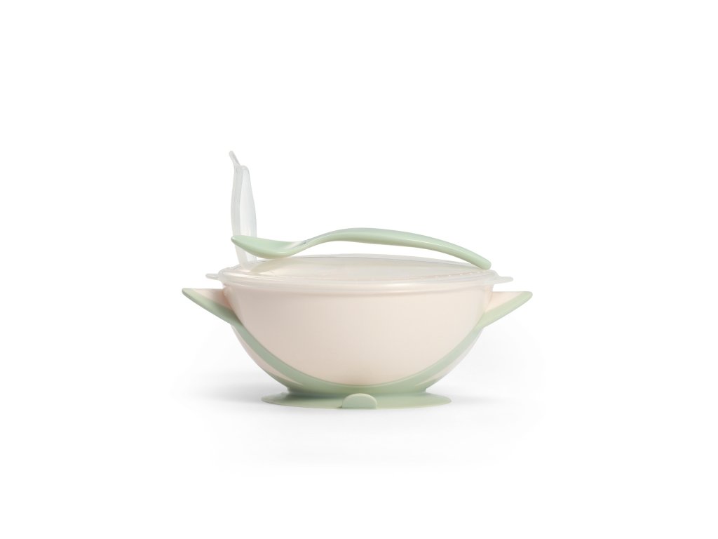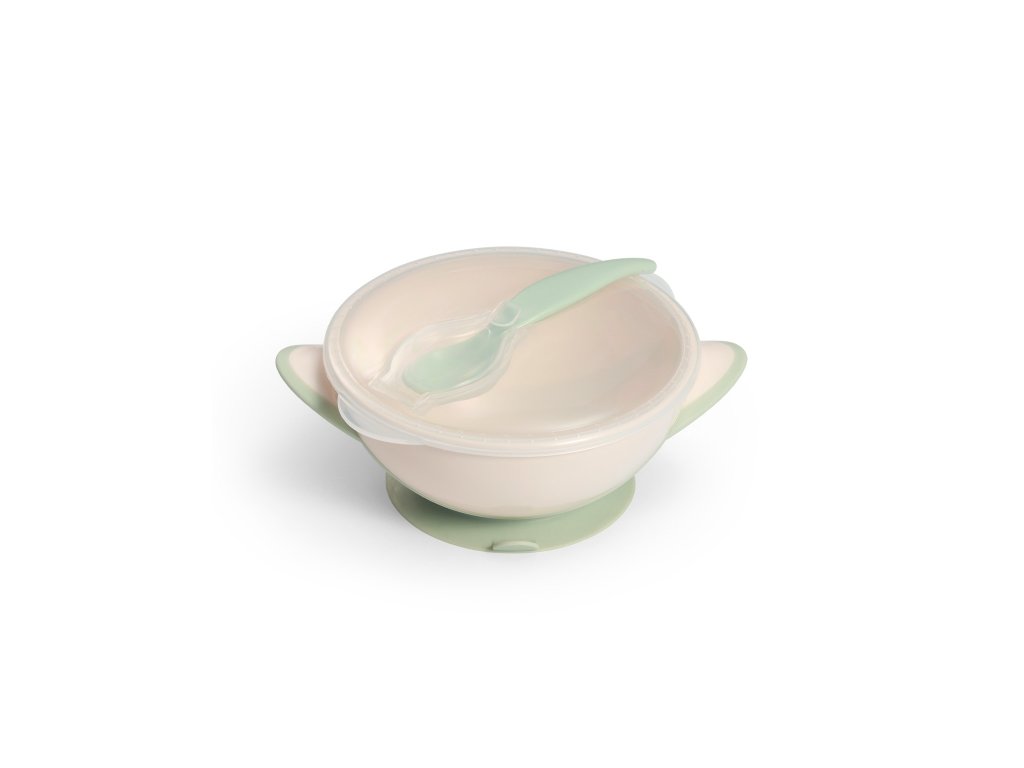 Uzaviratelná miska s přísavkou a lžičkou - ecru, zelená