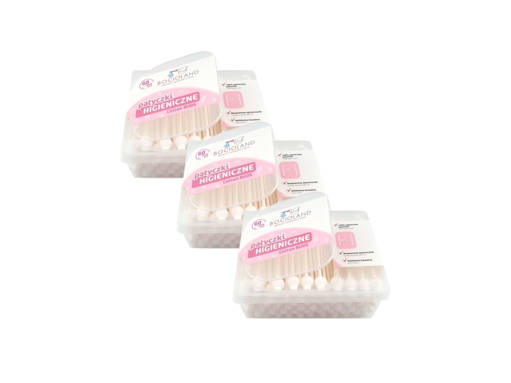 Výhodné balení - Vatové tyčinky k čistění nosu, uší a pupíku, 3x 60 ksVatové tyčinky Bocioland jsou vynikající volbou pro miminka a děti od narození. Jsou perfektní pro každodenní péči a hygienu kolem očí, uší, nosu a pupíku.