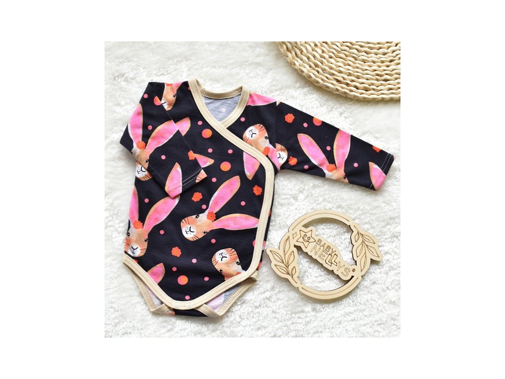 Zavinovací kojenecké body dl. rukáv, bavlna, Zajíček Baby Nellys, granát