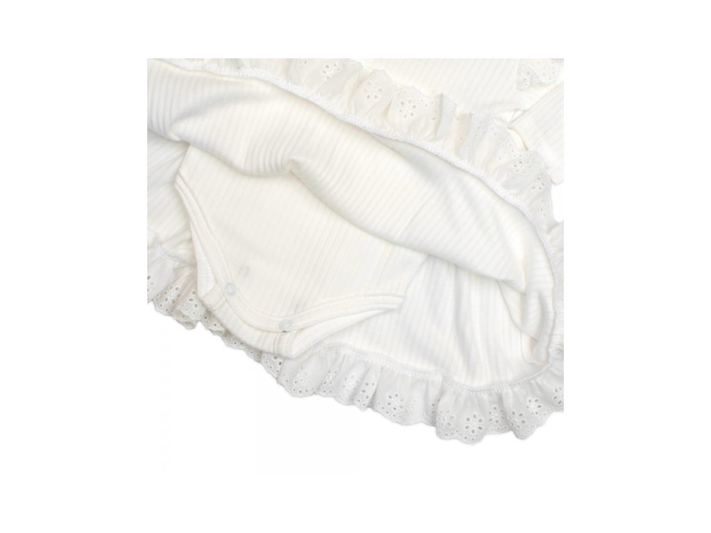 Žebrované sukničkobody + čelenka Paula, dl. rukáv, bavlna, 2D sada, smetanové