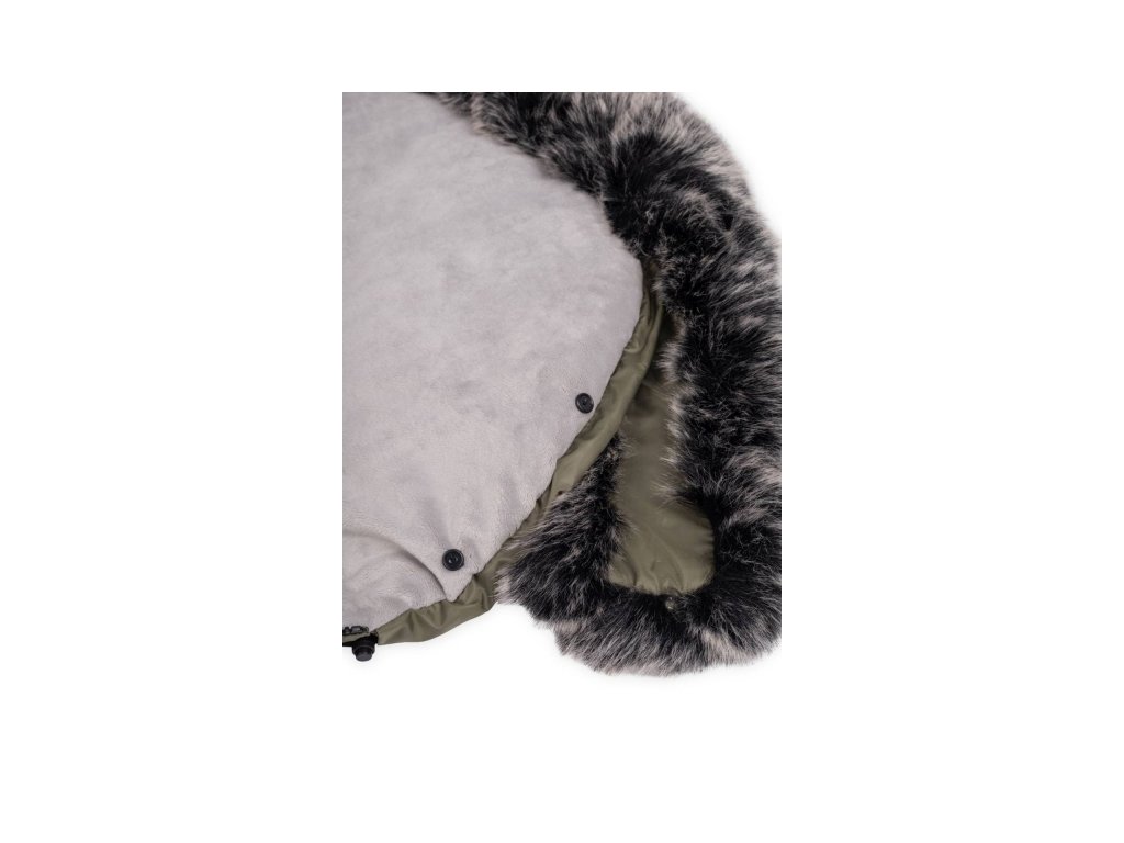 Zimní fusak s kožešinou + rukávník zdarma, Baby Nellys, 50 x 100cm, olivový
